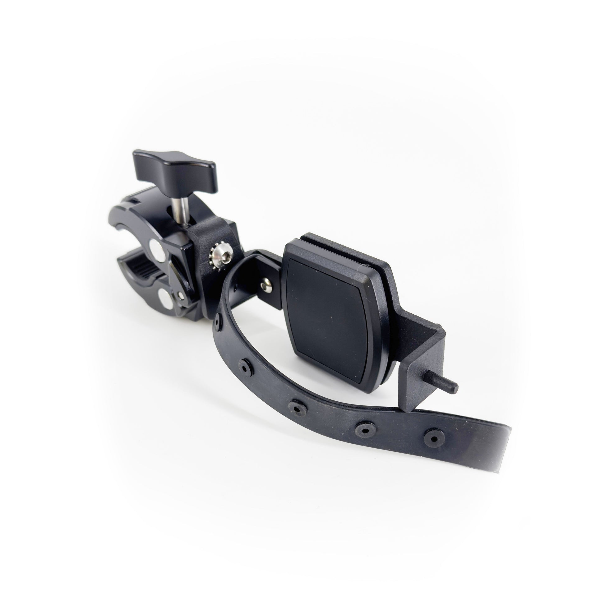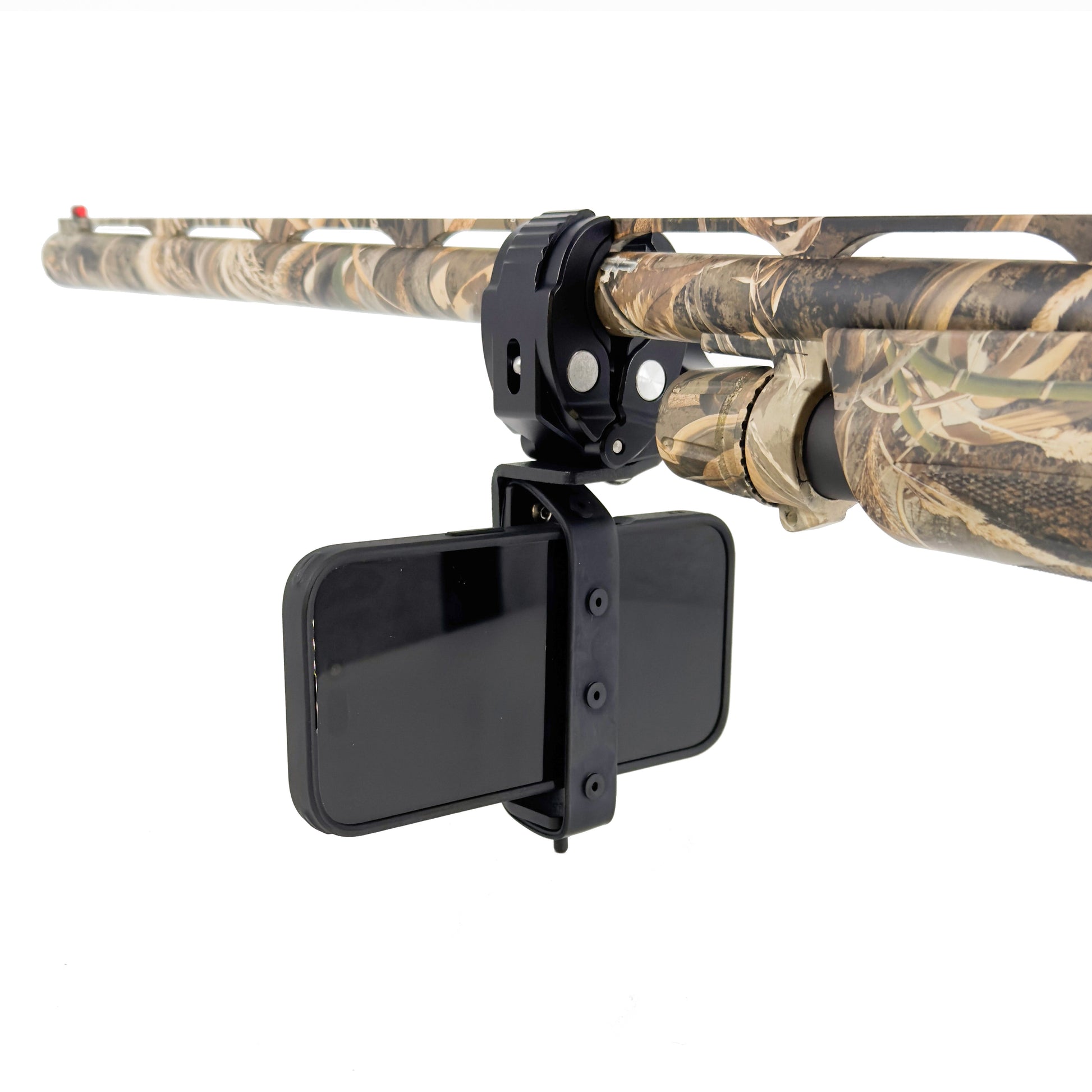 The SHOT-MAG utilizes our powerful Painted Arrow™ magnetic mounting system paired with a new rubber security strap to ensure your phone stays locked-in. The SHOT-MAG attaches to any diameter gun barrel by tightening the adjustable clamp. Multiple sized rubber saddles are included for the clamp to prevent rubbing on the barrel. These different radius saddles also help with shock absorption and to custom fit the various barrel diameters on the market.
