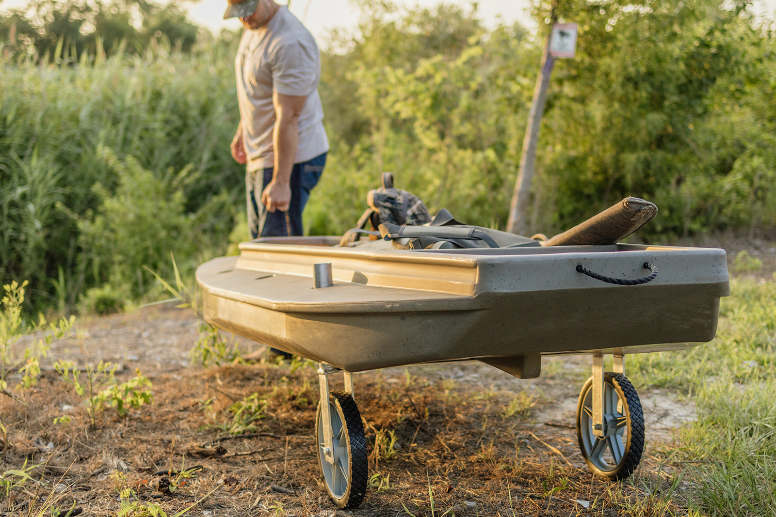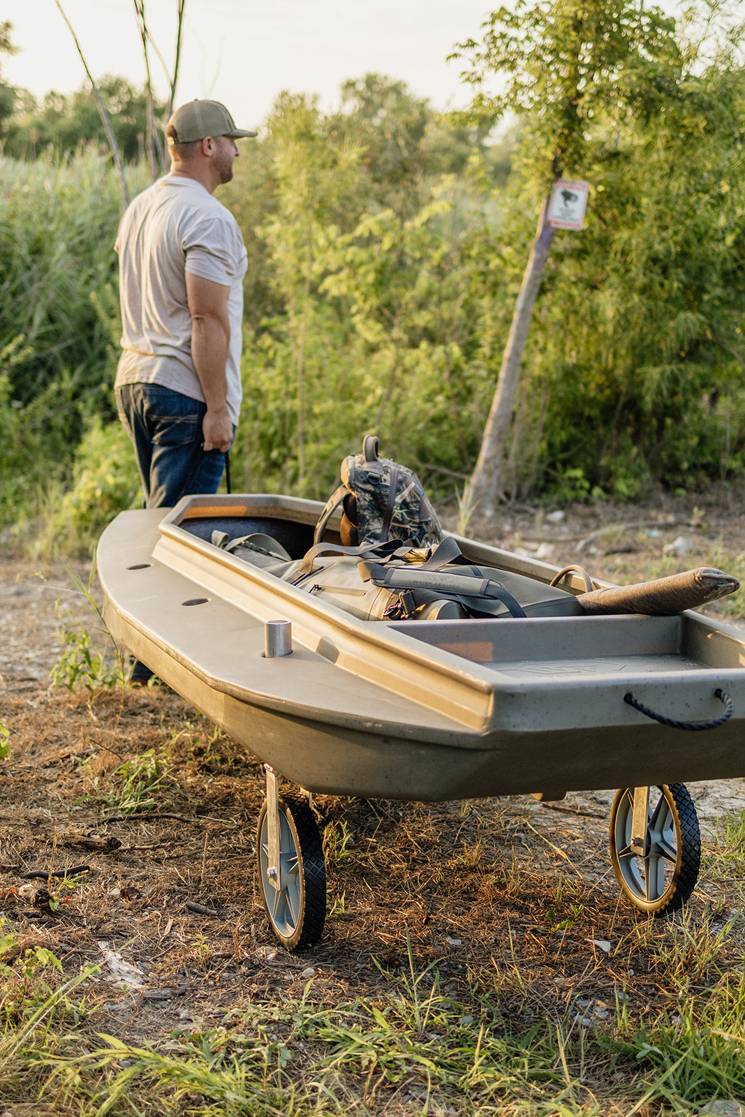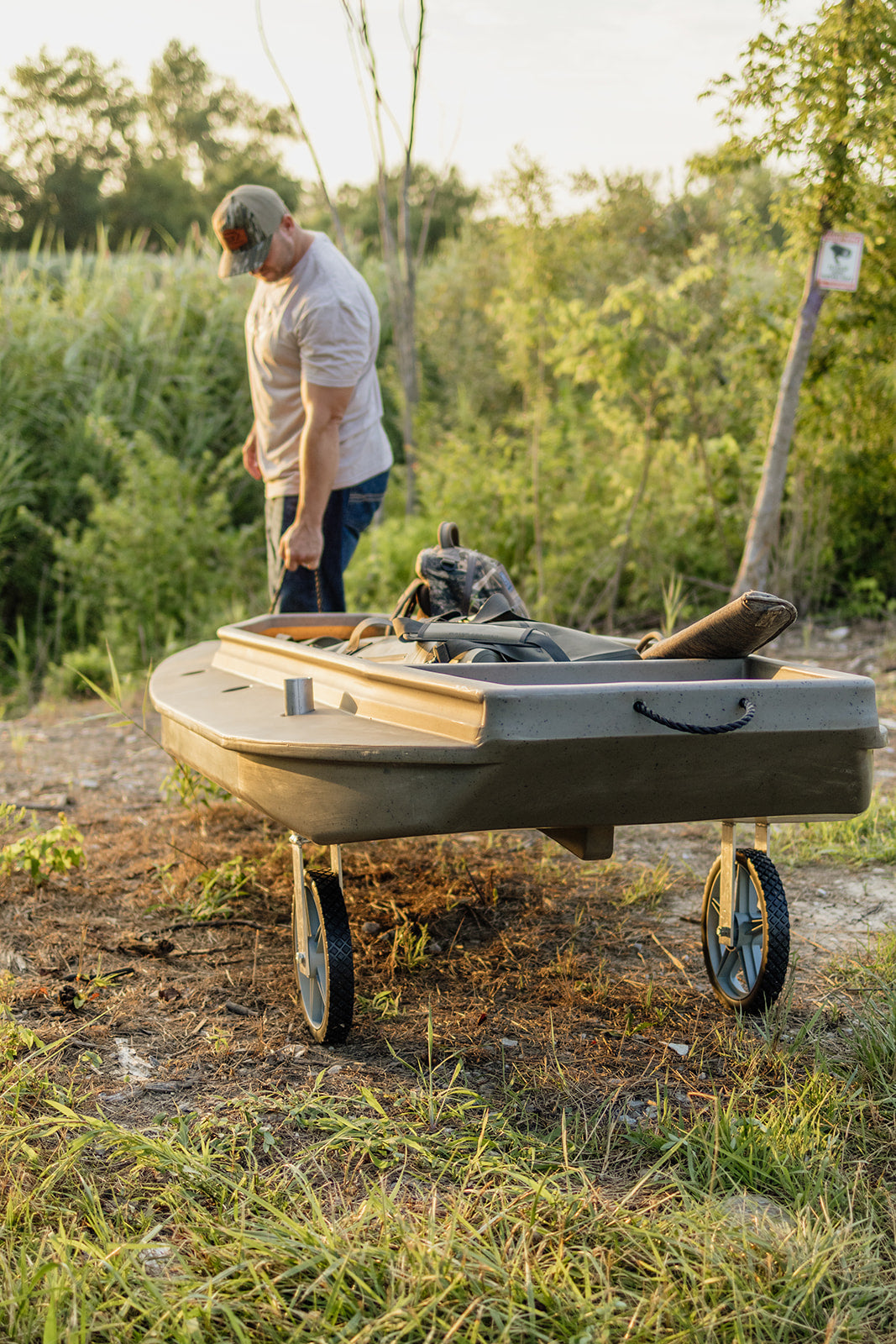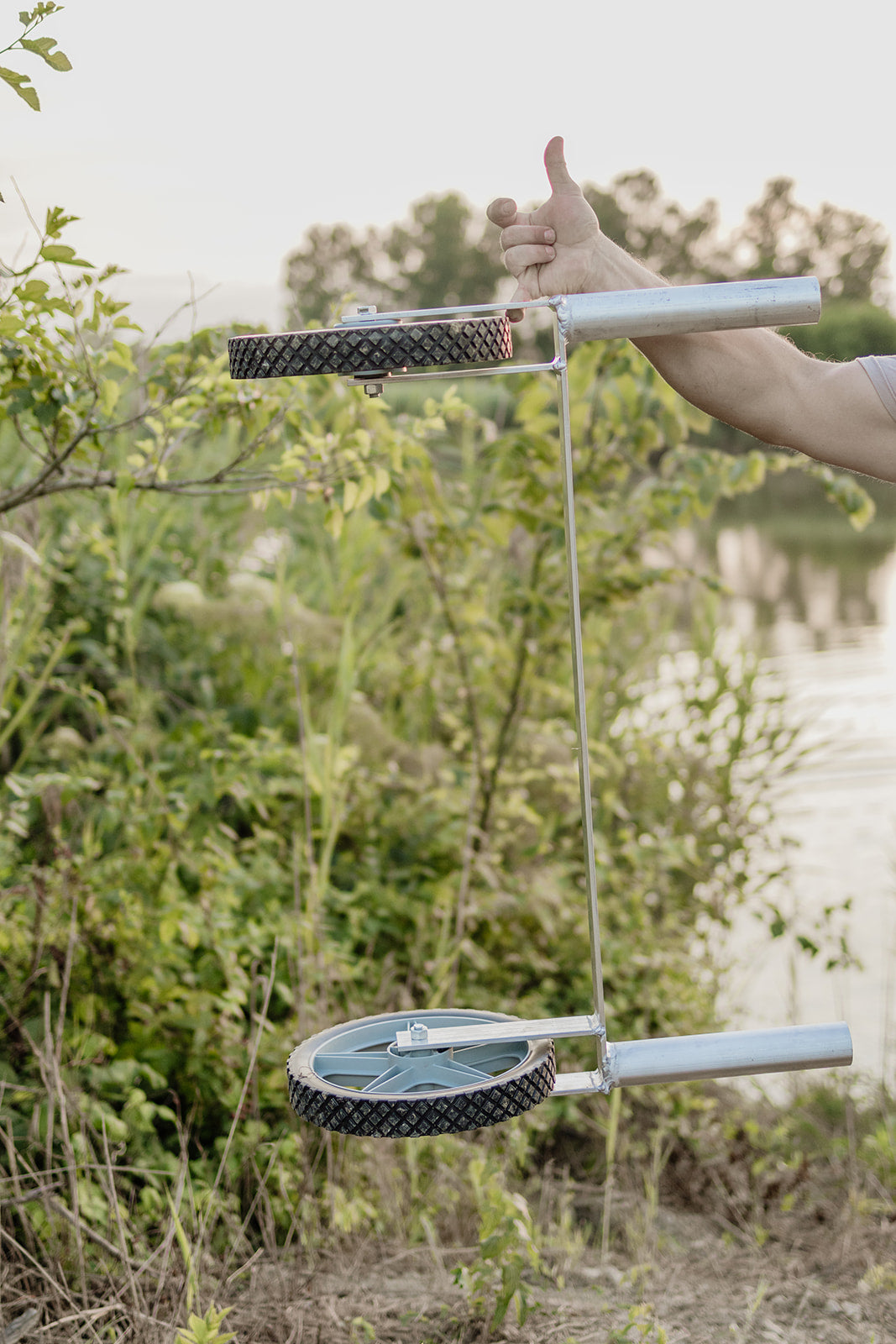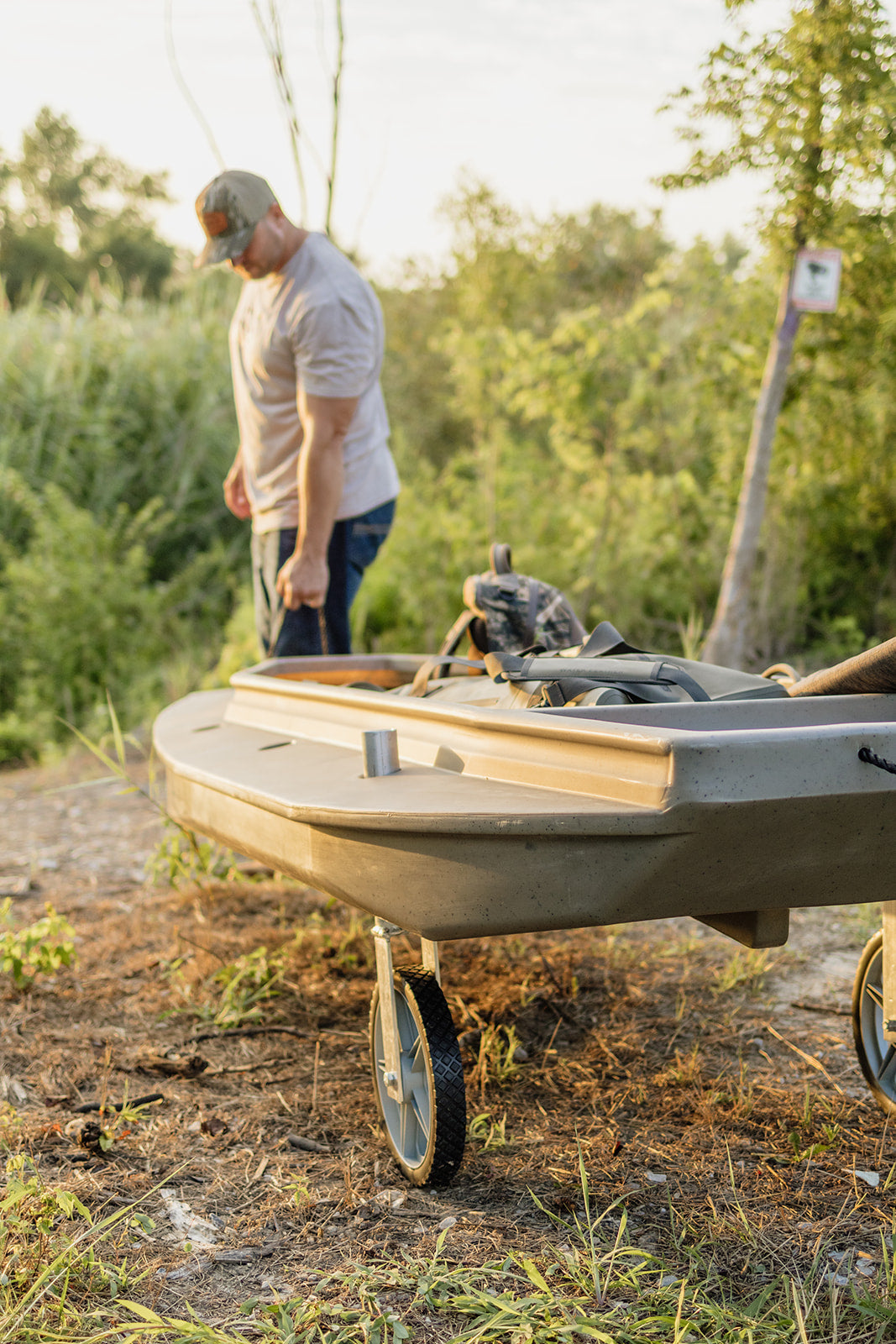 Engineered for simplicity, the installation process is quick and hassle-free, requiring minimal effort to attach and detach as needed. You can also adjust the wheel kit throw the 3 adjacent sets of spud holes to allow for better weight displacement and overall ergonomics. The compact design ensures convenient storage when not in use, making it an essential addition to your outdoor gear arsenal. When you leave the waters edge you can easily take wheel kit with you to avoid parting ways with your transport system. This allows you ultimately to be more mobile, and Go Farther in your search of getting in the heart of where you've always wanted to be.